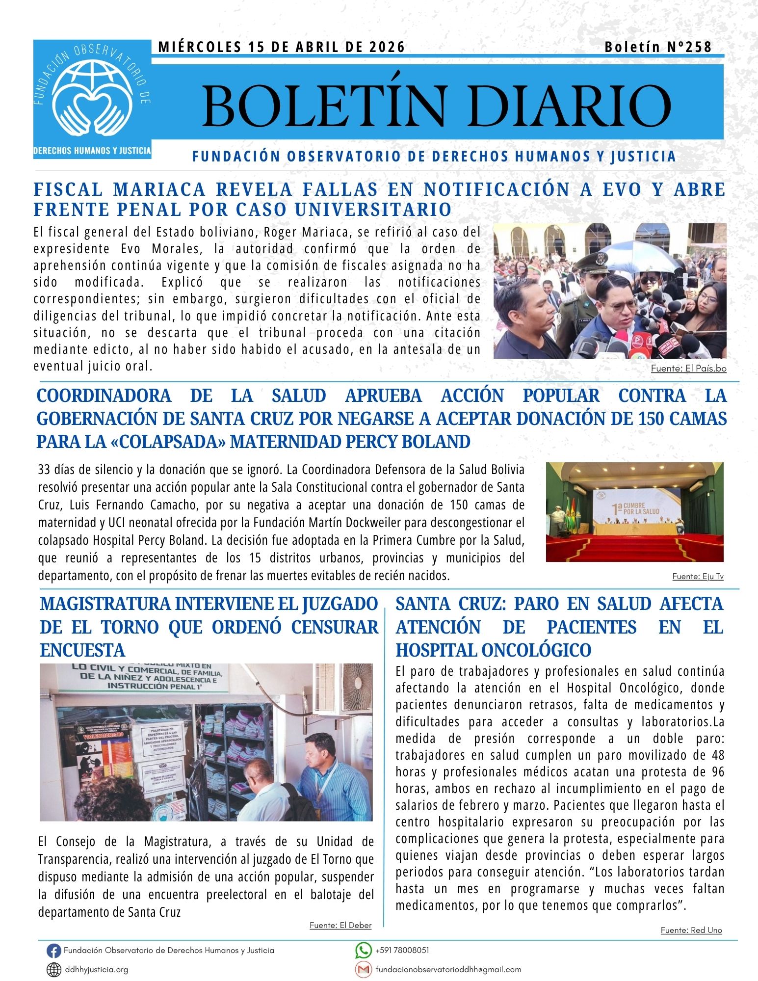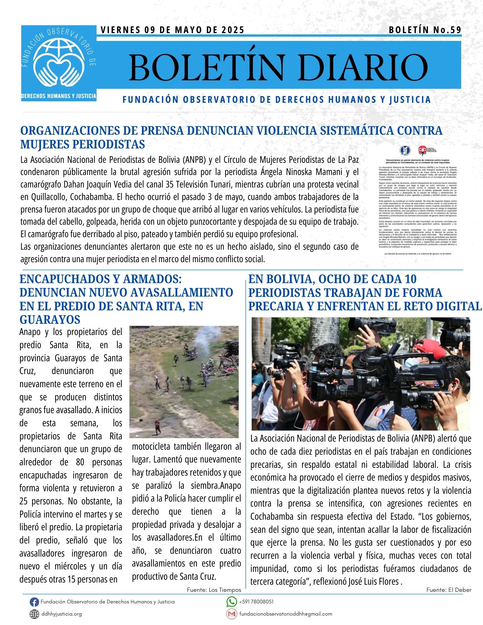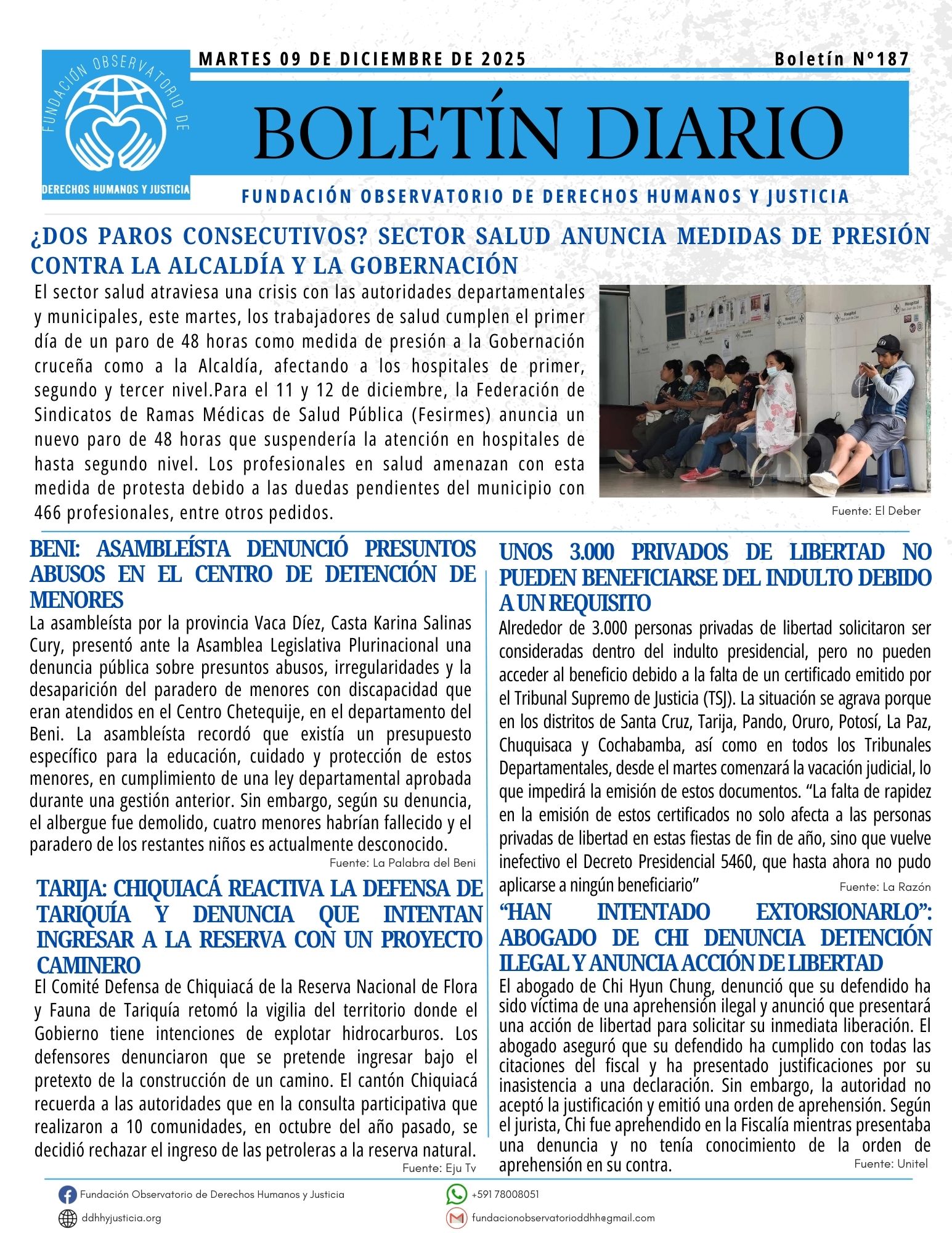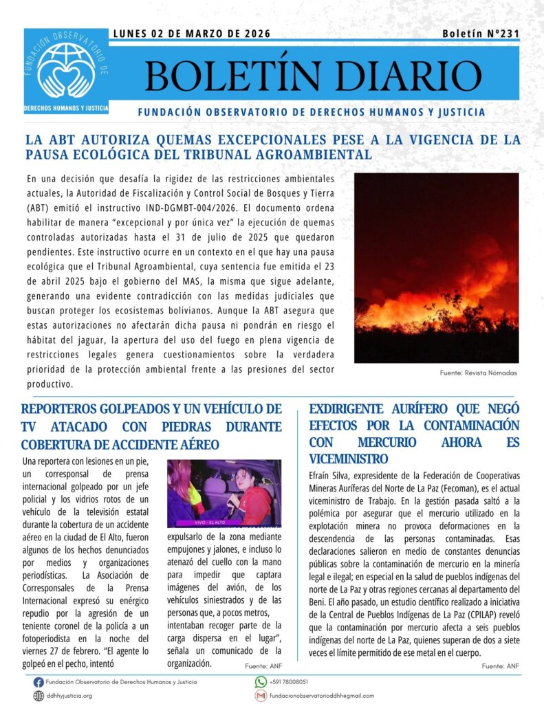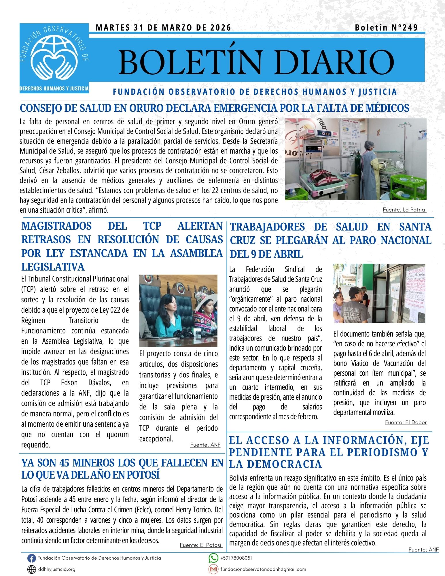 Desarrollamos nuestras actividades para que las frecuentes denuncias de violaciones de derechos humanos conocidas a través de diversos medios de prensa e instituciones que tienen los mismos objetivos, puedan visibilizarse y denunciarse. Para ello llevamos adelante un trabajo de monitoreo, investigación, observación y formación en derechos humanos, que nos permite conocer el estado real de la observancia y respeto de los derechos civiles y políticos en Bolivia.