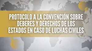 El Protocolo a la Convención sobre Derechos y Deberes de los Estados en caso de luchas civiles obliga a los Estados a impedir el apoyo, suministro o tránsito de armas destinadas a promover conflictos internos en otros países.